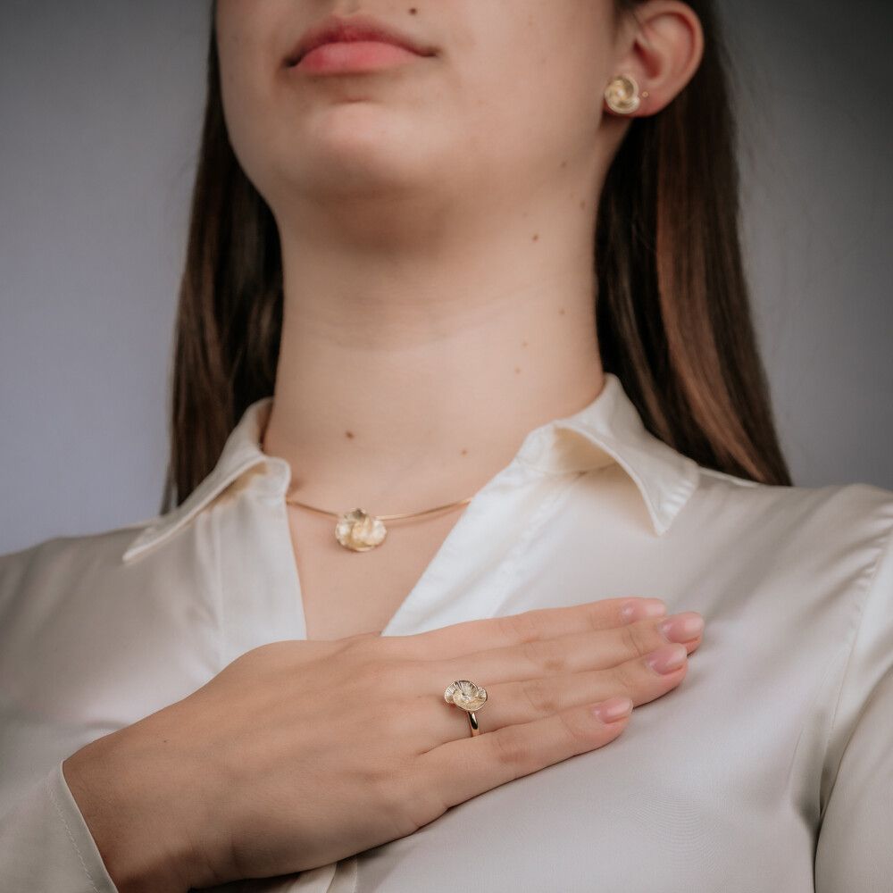 Ring gemaakt van 14 karaat goud met een diamant van 0.029CT I1/HI, de ring doet ons denken aan een klaproos.