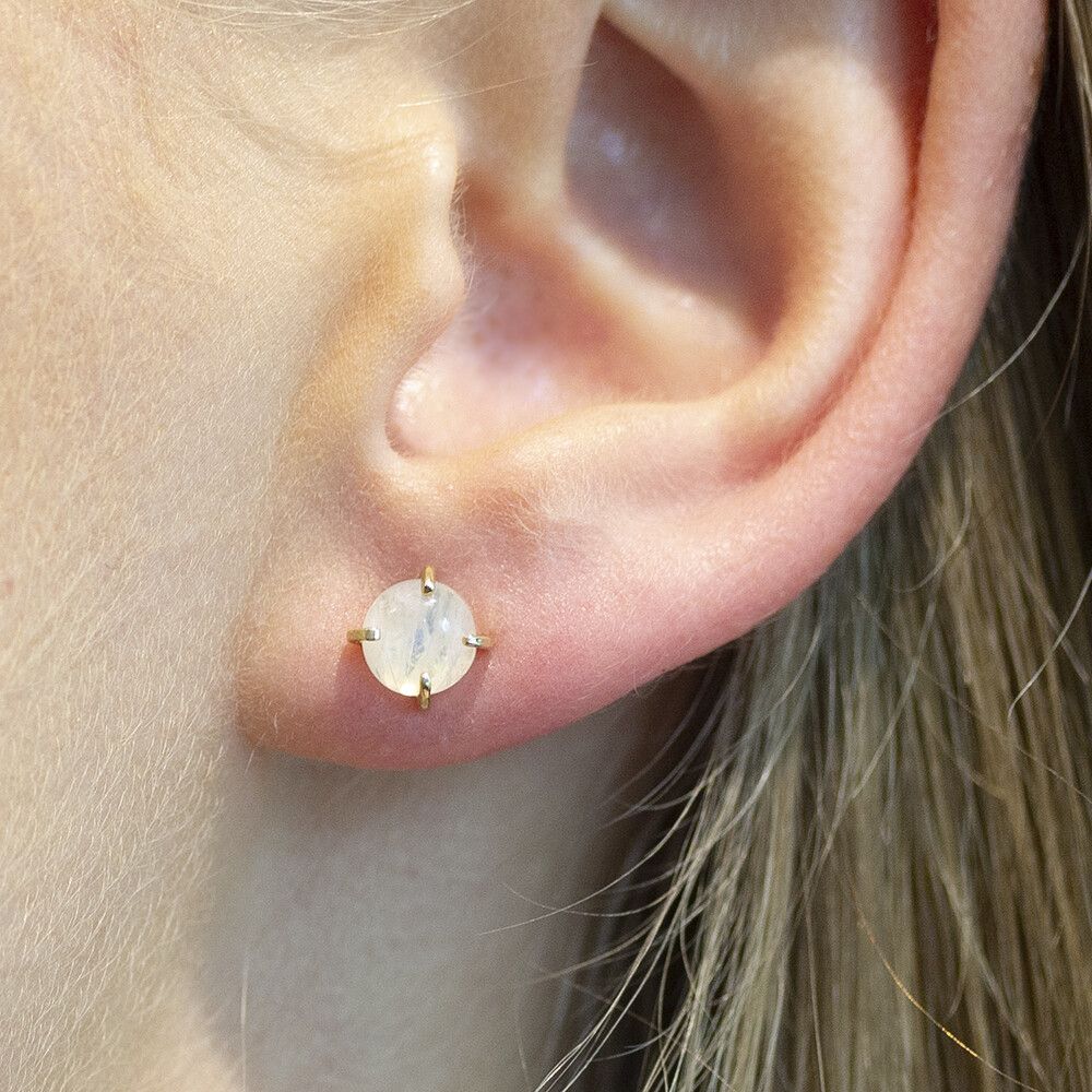 Oorbel van Jéh Jewels gemaakt van verguld zilver en Maansteen. Deze oorbellen zijn gemaakt van de Maansteen met daaromheen verguld zilver. Deze oorbellen zijn ideaal te combineren met de andere sieraden uit onze collectie.