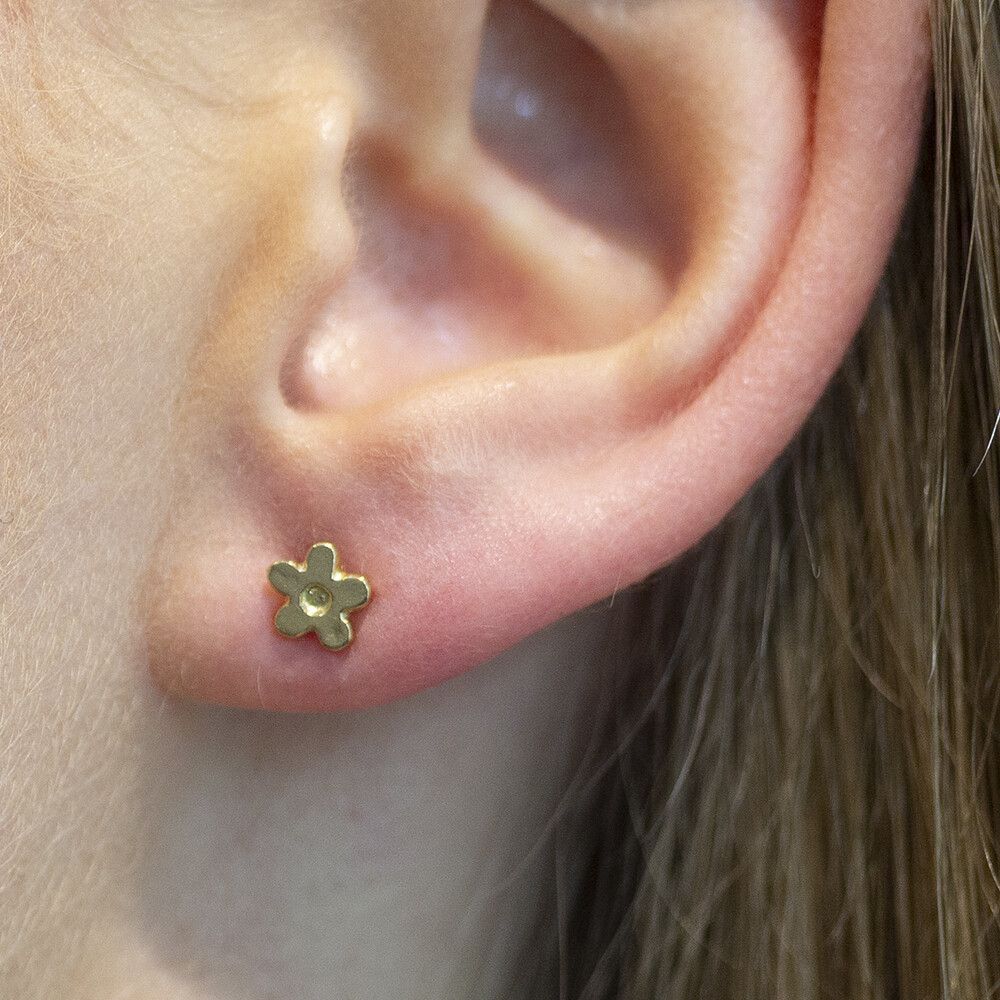 Oorknop gemaakt van zilver verguld. Deze oorbel in de vorm van een bloem is perfect te combineren of om los te dragen