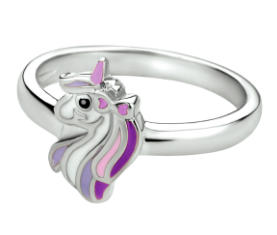 Schattige gerhodineerd zilveren fantasie eenhoorn ring met een breedte van 10mm. Deze ring is perfect te combineren met bijpassende sieraden uit onze collectie. Tip: Leuk om kado te geven zie je ze al stralen!? Info: Gerhodineerd zilver is door de rhodiumlaag beter bestand tegen verkleuren en krassen.