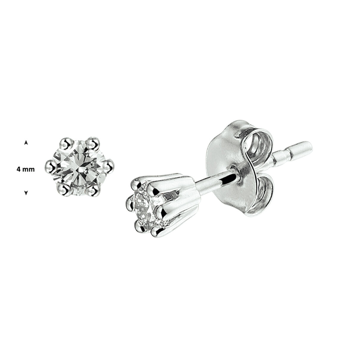 14 Karaat witgouden oorstekers met briljant. 2x 0.16 crt G/VSI.
