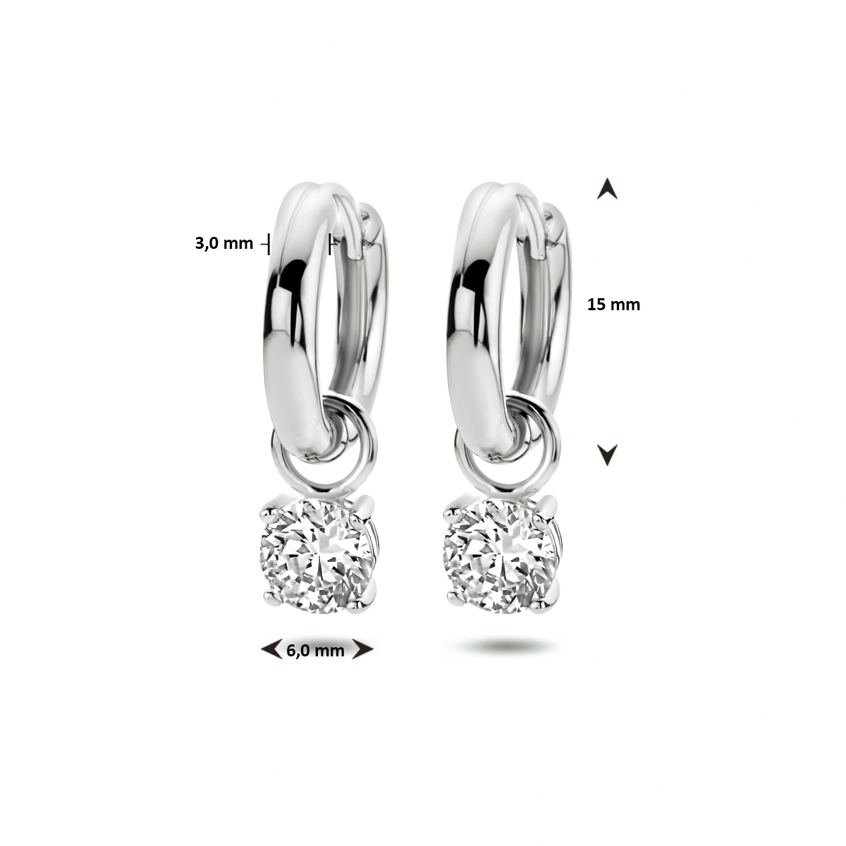 Beschrijving: Gerhodineerd zilveren klapcreolen met een zirkonia hanger.