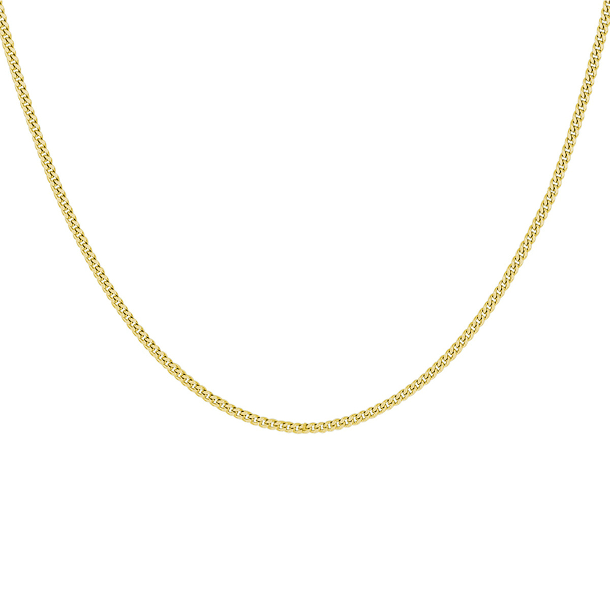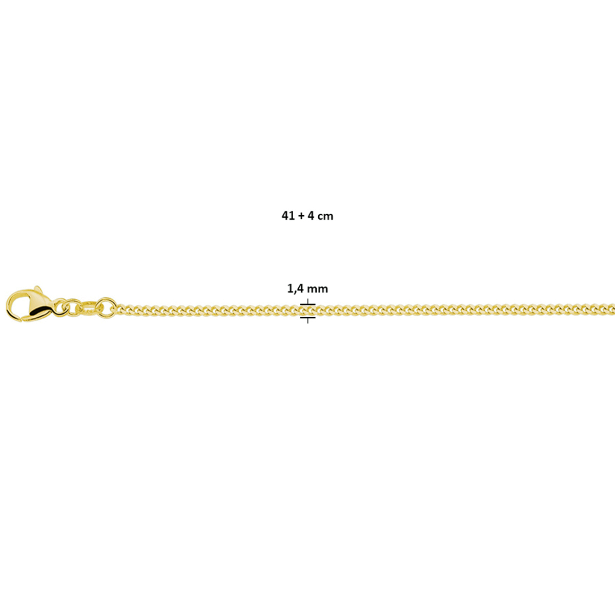 Verguld op 925 zilveren gourmette collier met een schakelbreedte van 1.4mm en een stevige karabijn sluiting. Geen garantie op plating.