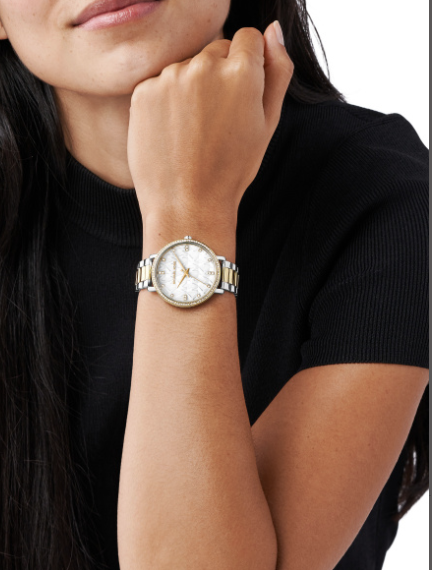 Michael Kors dames pols horloge staal met stalen band bicolor uit de collectie Pyper.