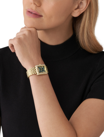 Michael Kors Quarts dames pols horloge staal met stalen band goudkleurig uit de Emery collectie. 5 ATM waterdicht.