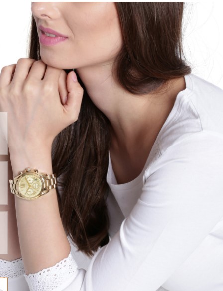 Michael Kors Quartz dames pols horloge staal met stalen band goudkleurig uit de collectie Bradshaw.