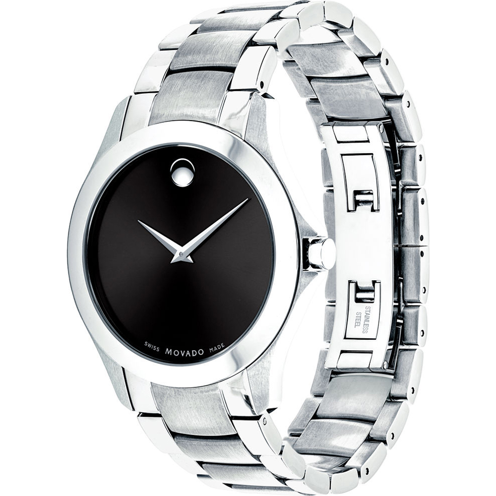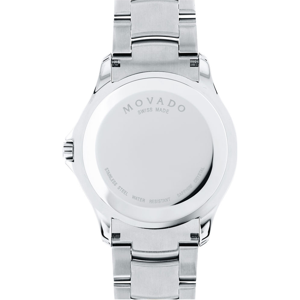 Dit Movado horloge heeft een kast gemaakt van Roestvrijstaal met een diameter van 40 mm en is voorzien van een metalen band. In de kast bevindt zich een ETA kwaliteitsuurwerk en is afgewerkt met Saffierglas.
