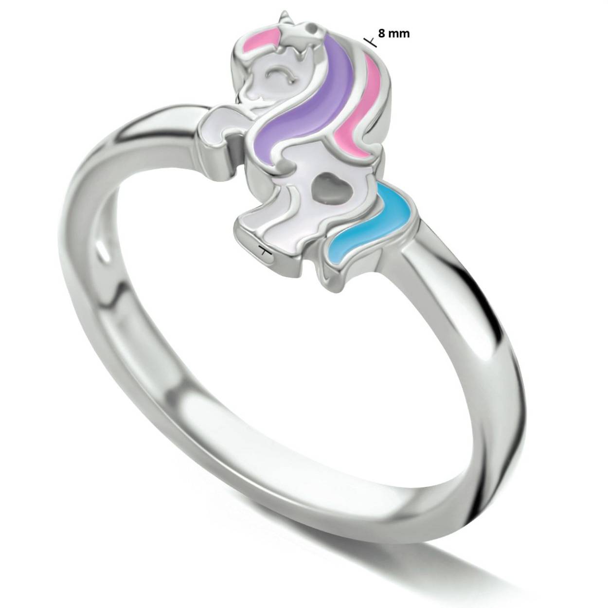 Gerhodineerd 925 zilveren ring uitgevoerd met een eenhoorn. De ring heeft een breedte van 8mm.