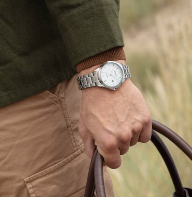 Olympic heren pols horloge staal met stalen band uit de Robin Collectie. 10 ATM waterdicht.