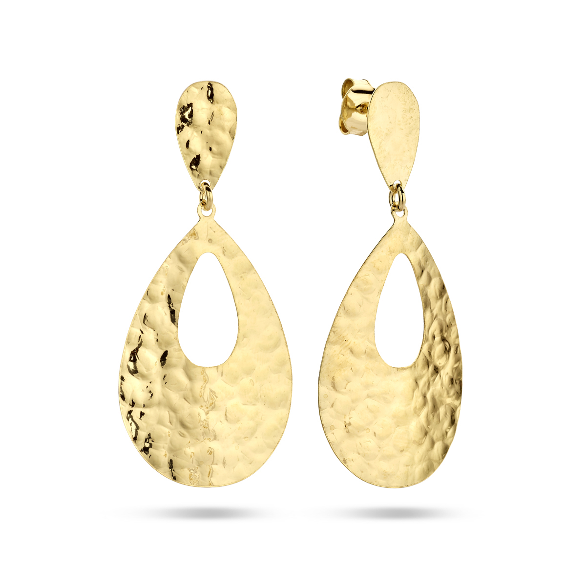 Geelgoud op 925 zilveren oorhangers met een totale hoogte van 45mm. Geen garantie op plating.