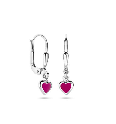 Gerhodineerd 925 zilveren oorhangers uitgevoerd met donkerroze emaille. De oorhangers hebben een totale hoogte van 19mm.