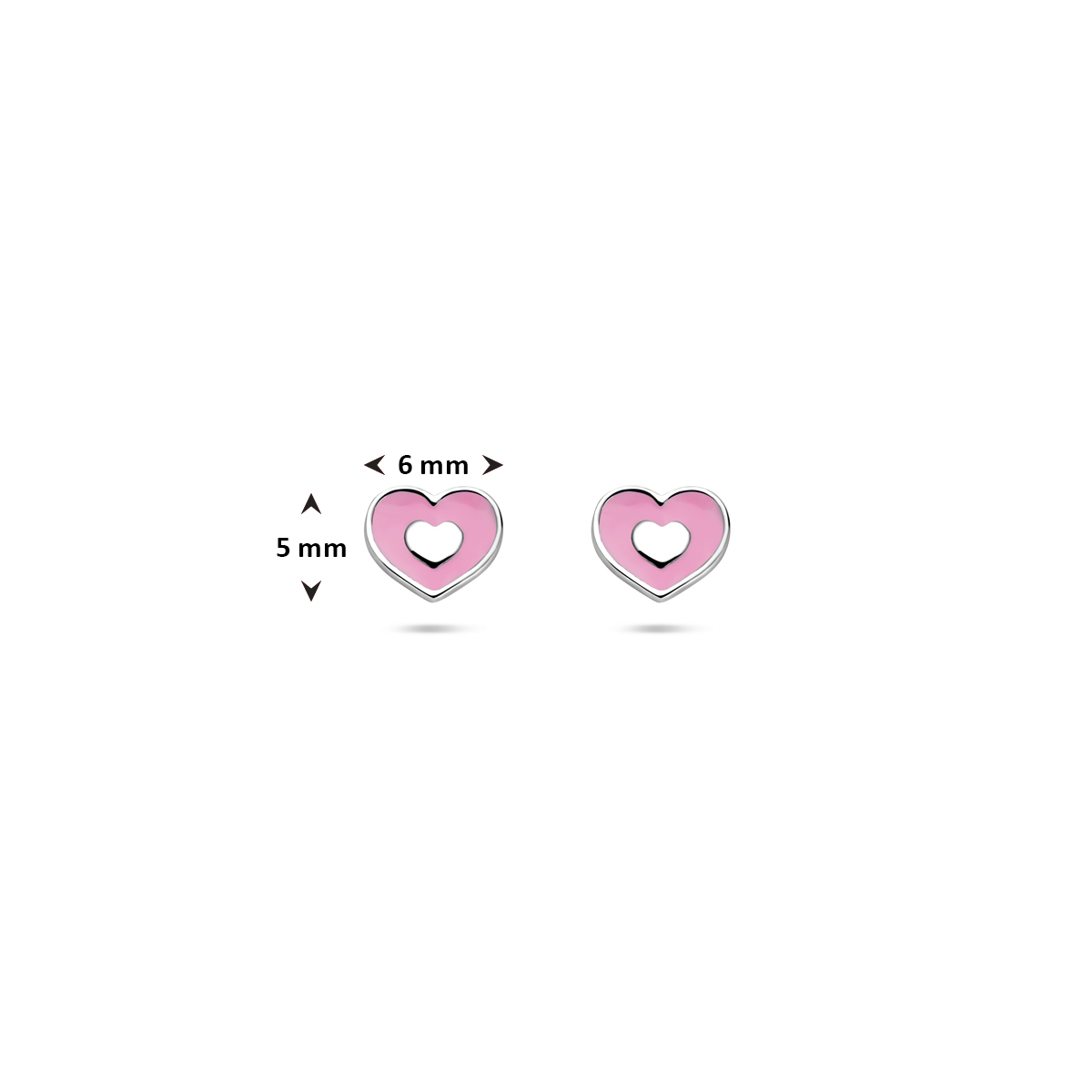 Gerhodineerd 925 zilveren oorknoppen uitgevoerd met emaille hartjes. De oorknoppen hebben een afmeting van 5x6mm.