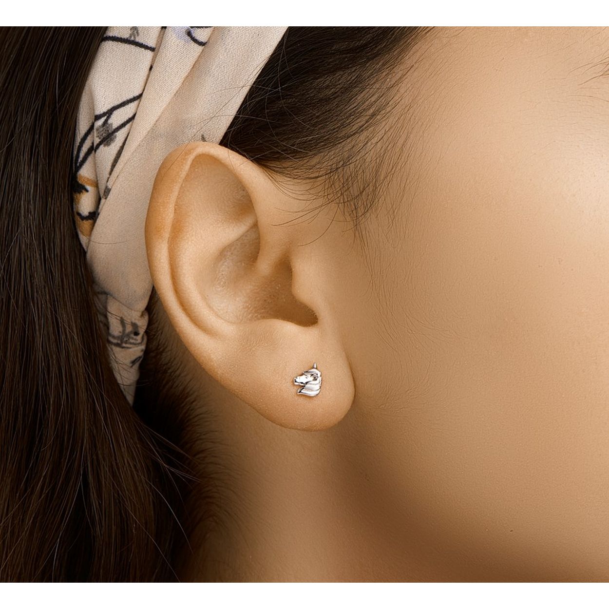 Gerhodineerd 925 zilveren oorknoppen in de vorm van een paardenhoofd. De oorknoppen hebben een afmeting van 7.5x5.5mm.