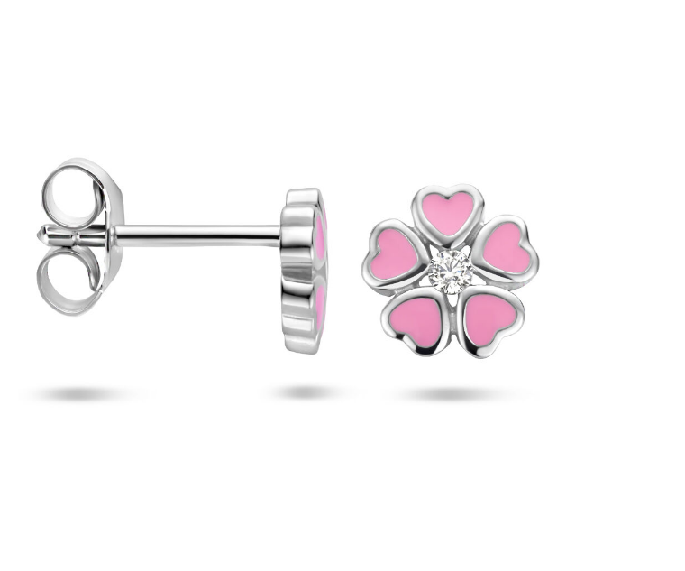 Gerhodineerd 925 zilveren oorknoppen uitgevoerd in de vorm van een bloem met een schitterende zirkonia. De oorknoppen hebben een afmeting van 6.5x6.5mm.