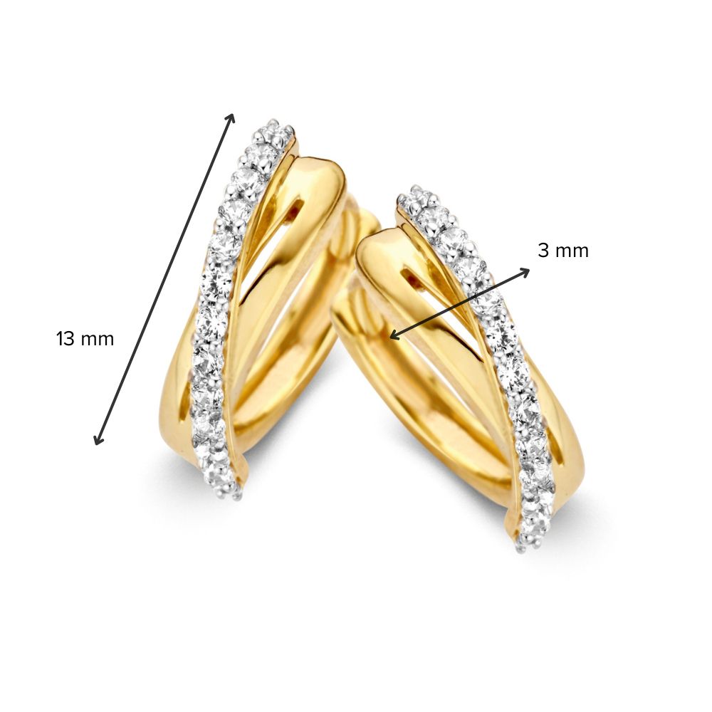 Geelgouden oorringen met één baan gezet met zirkonia's.