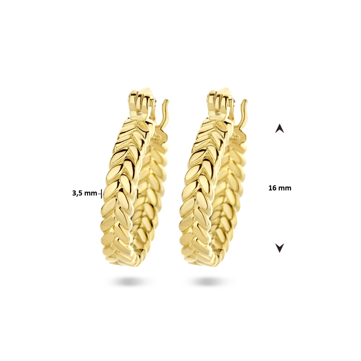 Geelgoud op 925 zilveren oorringen met een diameter van 16mm. Geen garantie op plating.