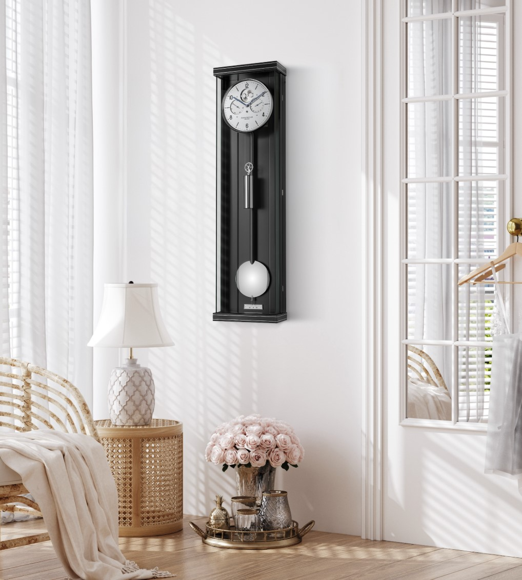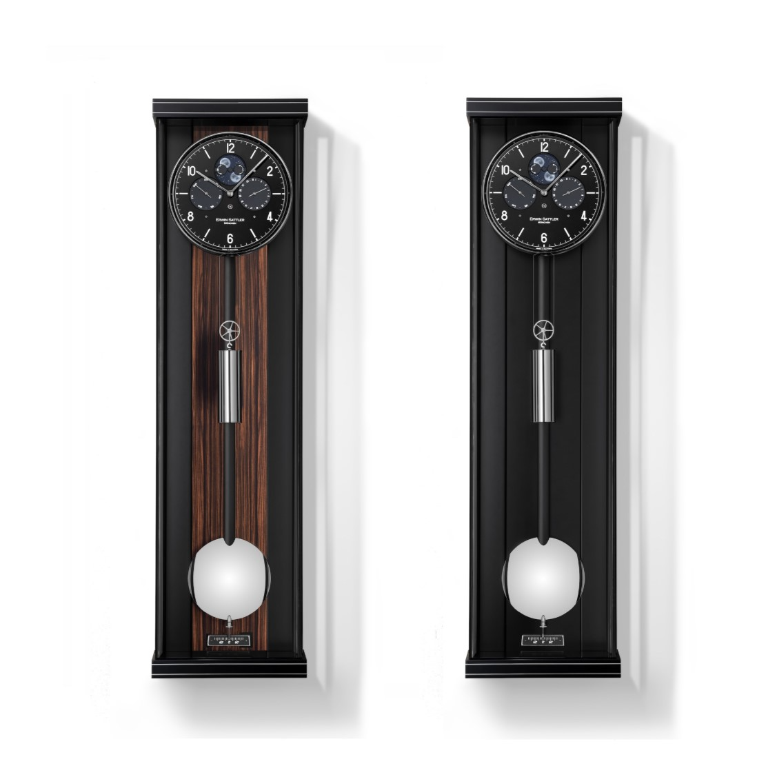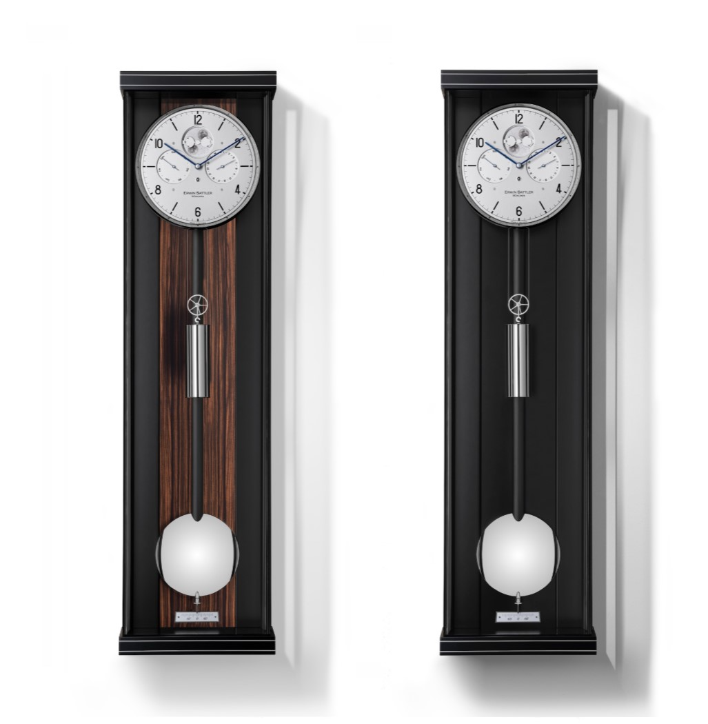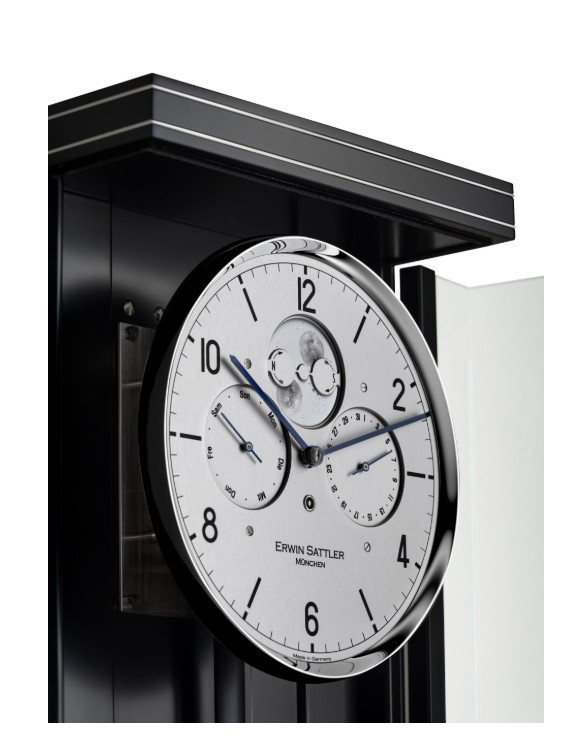 Met een zwarte of een witte volledig vernieuwde tweedelige wijzerplaat met een handbeschilderde maanstand en een dag en een datum aanduiding. 7 Robijnlagers en 4 precisie kogellagers. Slinger lens en Lunette massief vernikkelt. Kast in zwarte slijplak en metaal inleg in de boven en onder rand met U-Vormig ontspiegeld mineraalglas. Ook leverbaar met een Makkasar rug wand Loopduur 30 dagen.