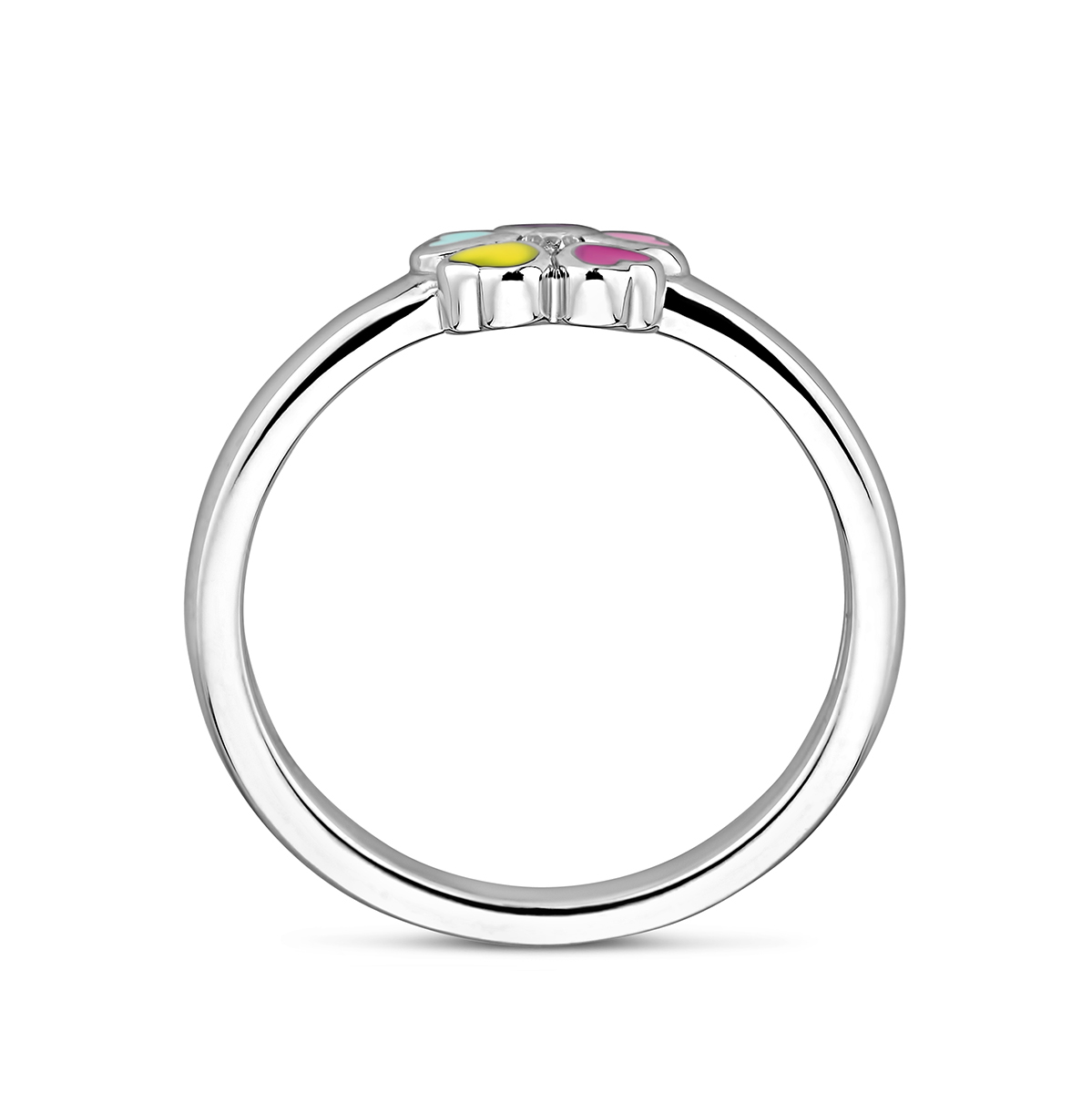 Gerhodineerd 925 zilveren ring uitgevoerd met zirkonia en een bloem. De ring heeft een breedte van 6mm.