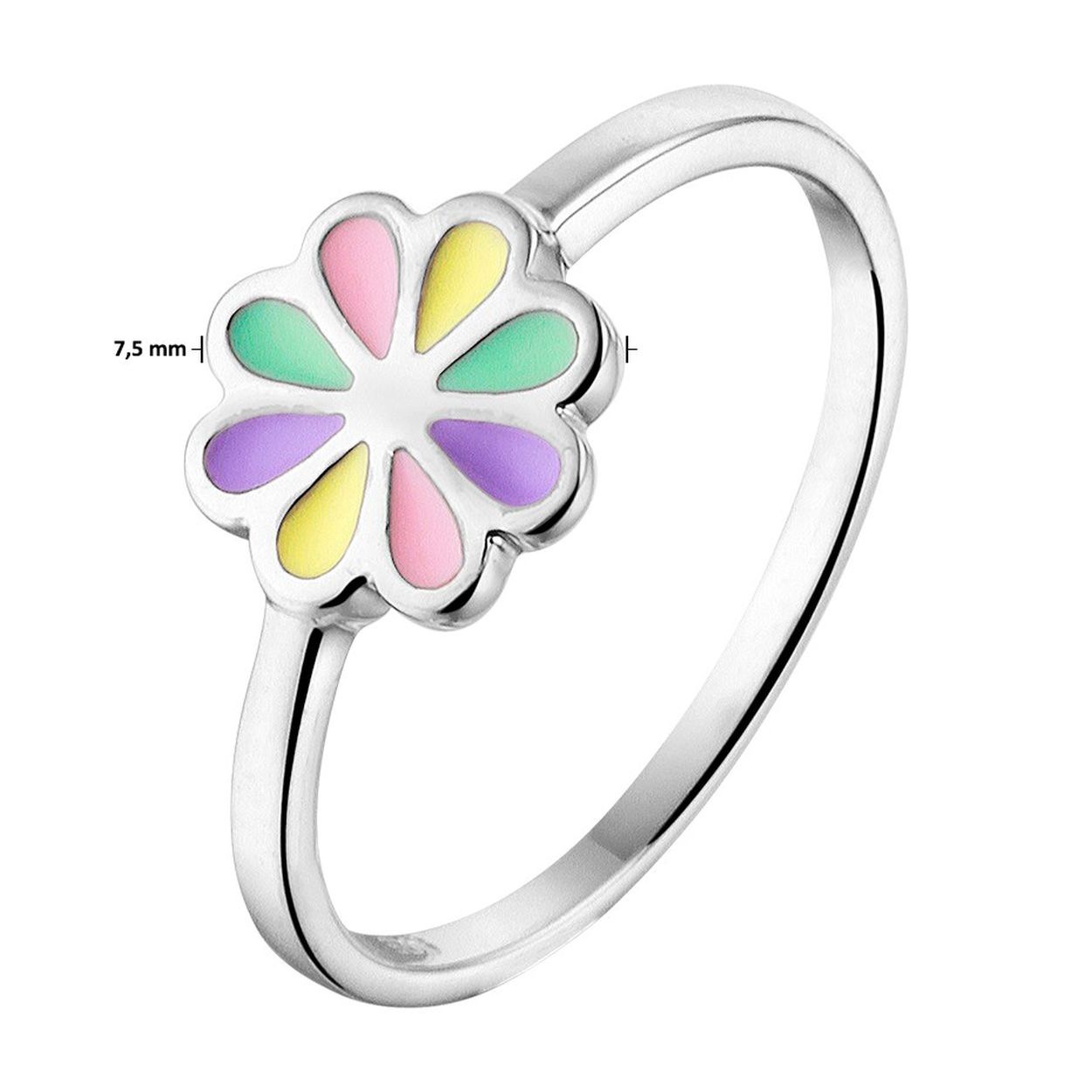Gerhodineerd 925 zilveren ring uitgevoerd met een bloem. De breedte van de ring is 7.5mm.