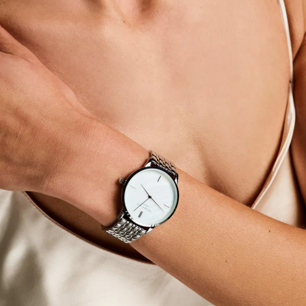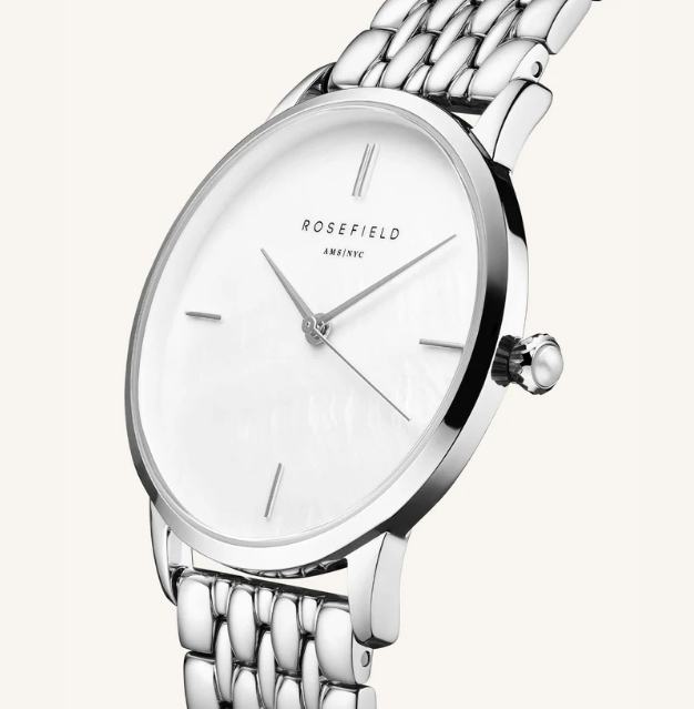Rosefield lanceert The Pearl Edit — een klassiek horloge met een minimalistische look en een glamoureuze twist. De wijzerplaat is gemaakt van glanzend parelmoer en op de kroon vindt je een pareltje! The Pearl Edit is een slagje groter met een 36mm horlogekast.