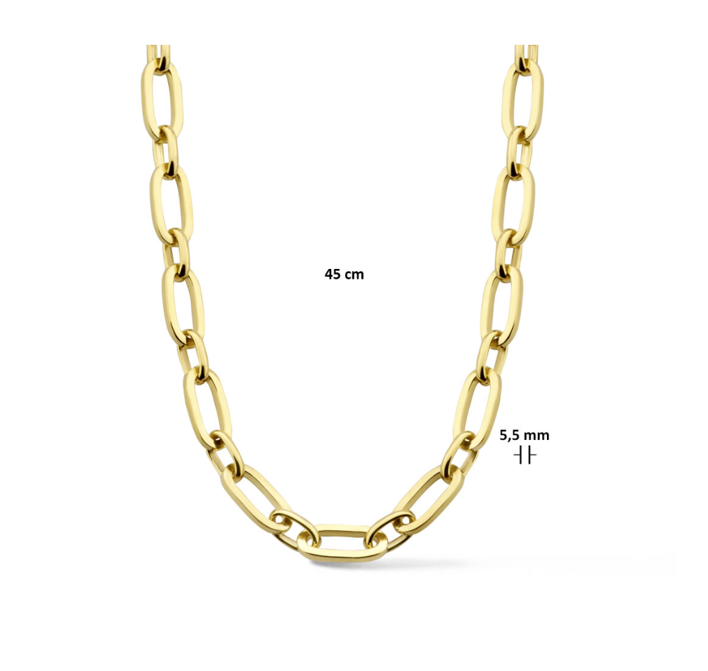 ZilGold 14 karaat Geelgouden anker collier met een kern van 925 zilver. Het collier heeft een schakelbreedte van 5.5mm en een draaglengte van 45cm. Het collier is uitgevoerd met een stevige karabijn sluiting.
