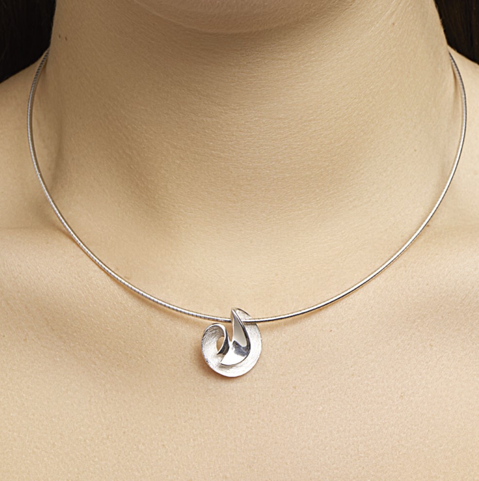 Gerhodineerd zilveren collier met een poli en gescratchte afwerking. Het collier is onderdeel van een set. 20 X 19 mm.