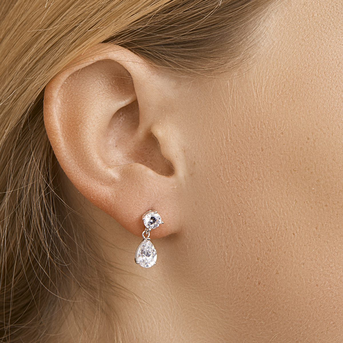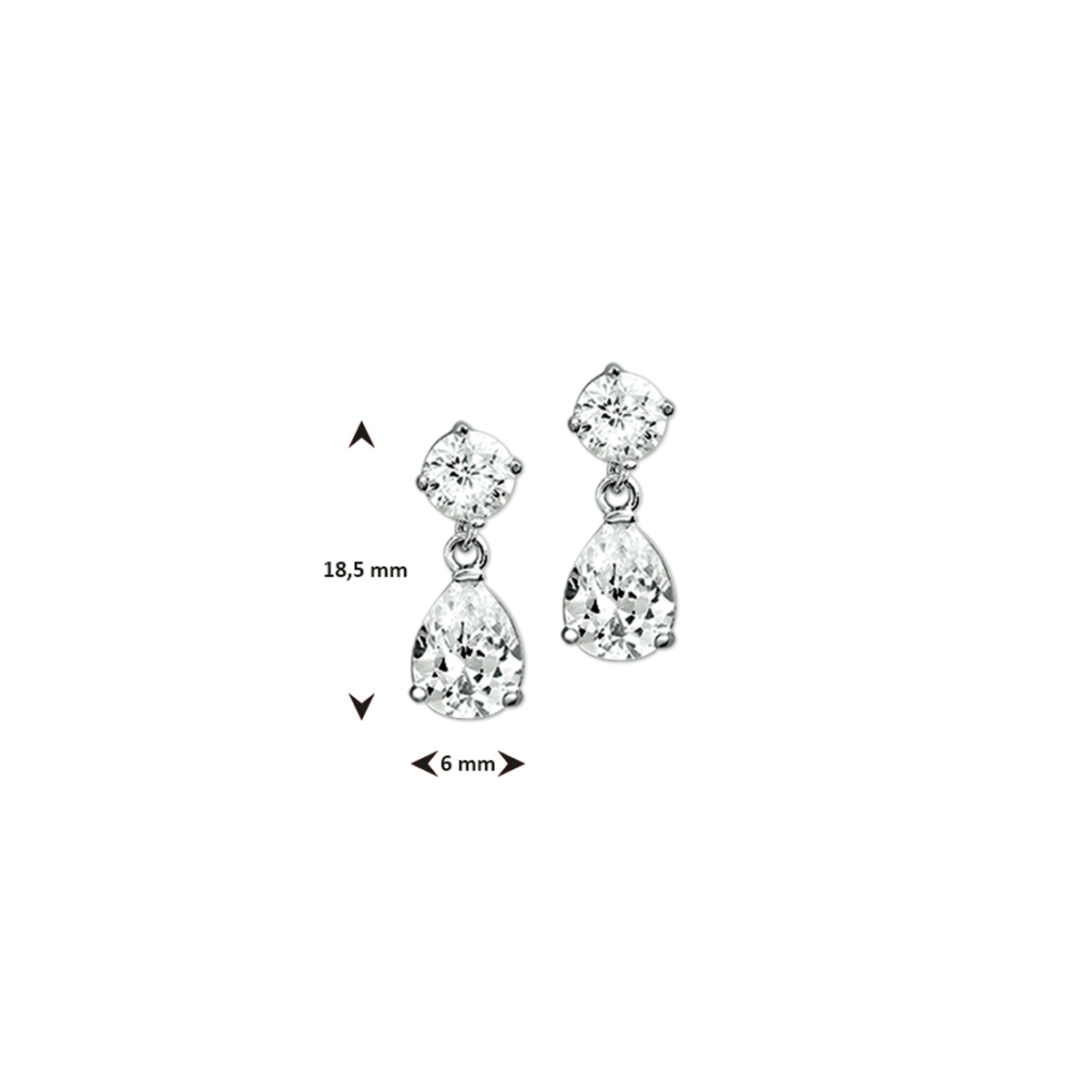 Gerhodineerd 925 zilveren oorhangers uitgevoerd met schitterende zirkonia. De oorhangers hebben een totale afmeting van 18.5x6mm. De maten van de stenen zijn 5mm en 9x6mm.