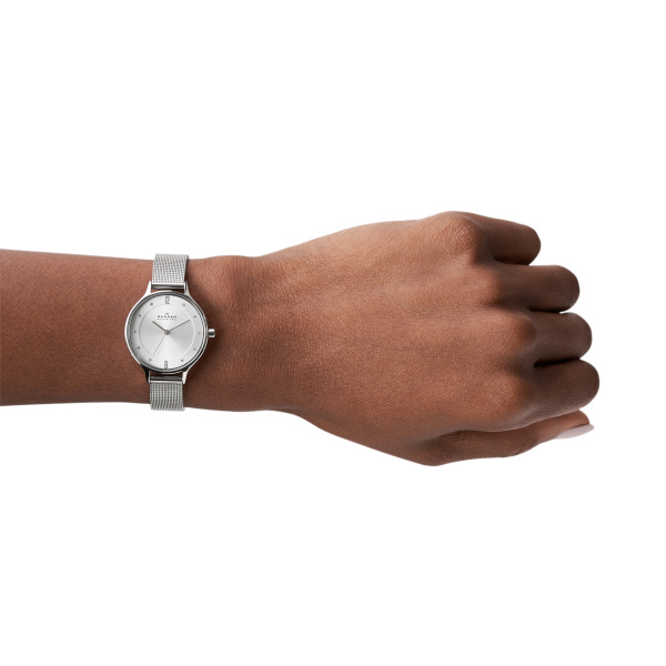 Skagen Quarts dames pols horloge staal met stalen band uit de Anita Lille collectie. 3 ATM waterdicht.