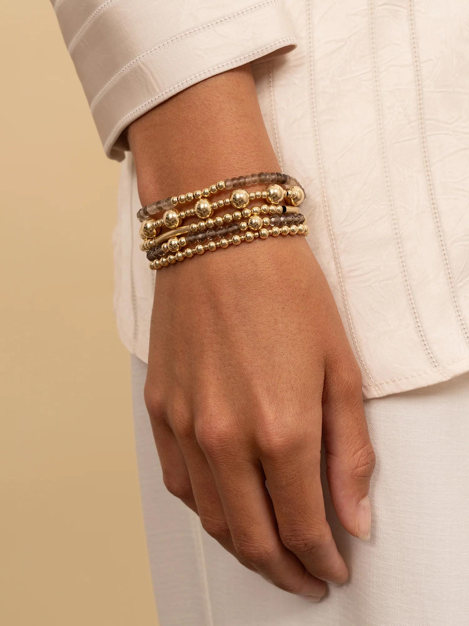 Deze armband combineert de aardse schoonheid van smoky quartz met de glans van 925 sterling zilver. De 4mm kralen zijn zorgvuldig geregen op een stevig elastiek, wat zorgt voor comfort en flexibiliteit. Smoky quartz staat bekend om zijn beschermende en aardende eigenschappen, wat deze armband niet alleen mooi maar ook betekenisvol maakt. Het tijdloze design maakt het een veelzijdig sieraad dat moeiteloos past bij diverse stijlen en gelegenheden.