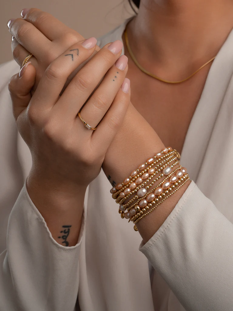 Maak jouw armbanden stack compleet met deze Peach Pearl Reverse Bold Mix armband. Combineer hem met onze andere Peach Pearl sieraden of kies voor een mooie mix met één van onze andere edelstenen.