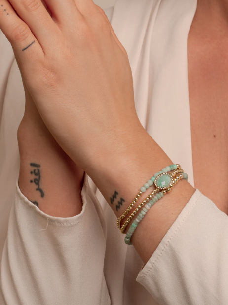 Stack je armbanden met de Sparkling Jewels beads armbanden. Deze Green Amazonite Twist armband met een vintage randje is perfect te matchen met de oorbellen en pendanten uit de Twist Collection.