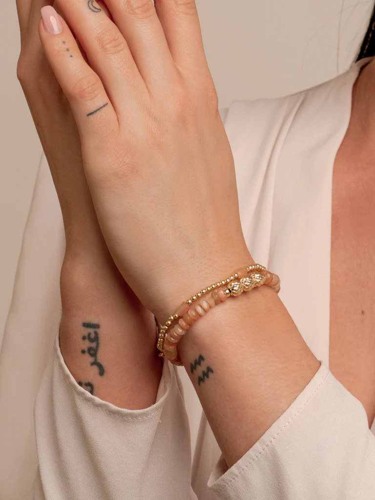 De Sunstone Reversed Edge Mix armband is een geweldige aanvulling op jouw armbanden- en sieradencollectie. Of je de Reversed Edge Mix armband nu los draagt of combineert met onze andere kralenarmbanden: de Reversed Edge Mix armband trekt direct de aandacht door de prachtige Sunstone gefacetteerde beads!