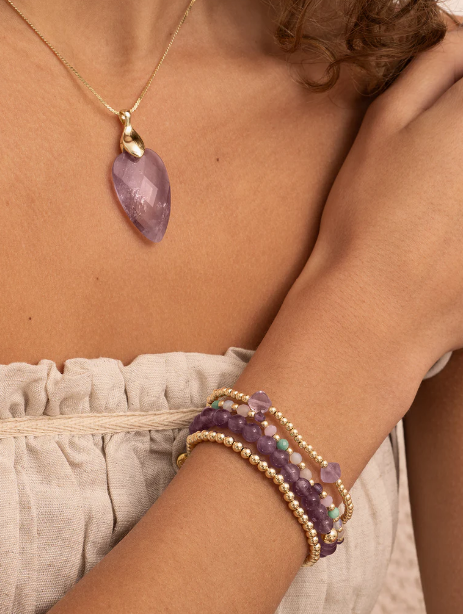 De helder gekleurde Saturn armbanden zijn echte musthaves. Vol elegantie kan je deze Amethyst armband alleen dragen of combineer hem met andere Sparkling Jewels armbanden. Deze eyecatching edelsteen armbanden zijn het perfecte cadeau voor iemand speciaal.