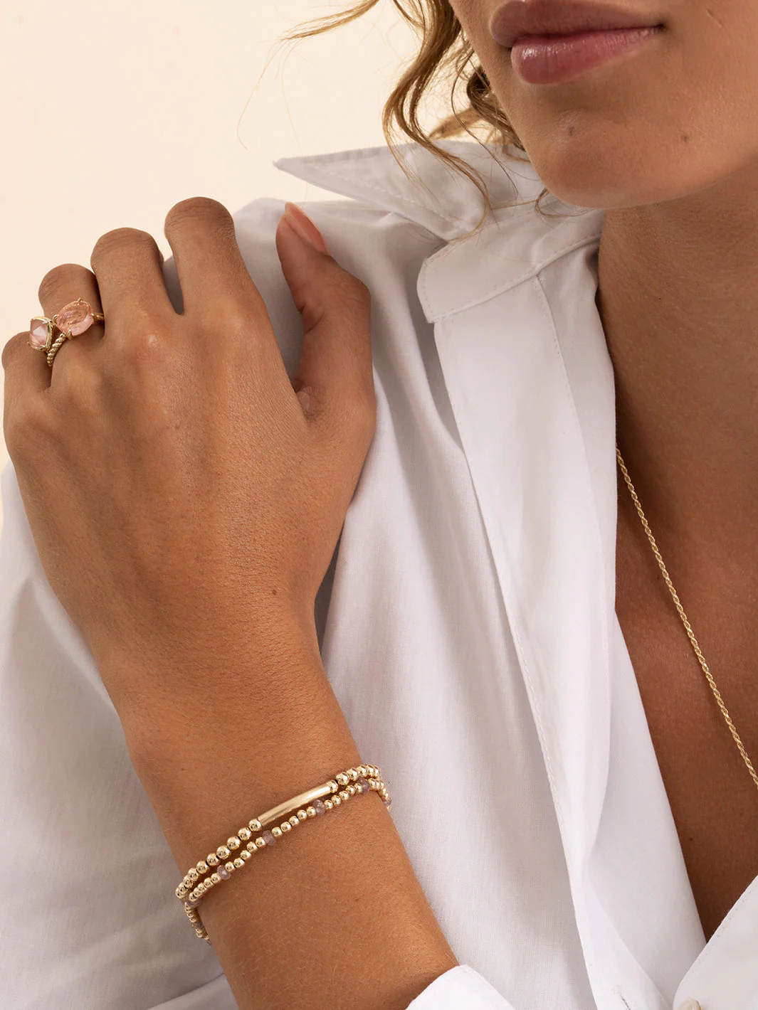 De Reverse Roundel Armband Pink Opalite brengt een gevoel van rust en elegantie samen in één stijlvol ontwerp. De lichtroze opaalachtige steen glanst zacht en straalt een subtiele warmte uit. Dankzij de ronde schakels draagt de armband comfortabel en is ze geschikt voor elke dag. Pink Opalite is geliefd om haar kalmerende energie en wordt vaak gedragen als symbool voor liefdevolle verbinding. Deze armband is een verfijnde aanvulling op je sieradencollectie, zowel solo als in combinatie met andere zachte tinten. Voor een romantisch, modern accent vol betekenis.