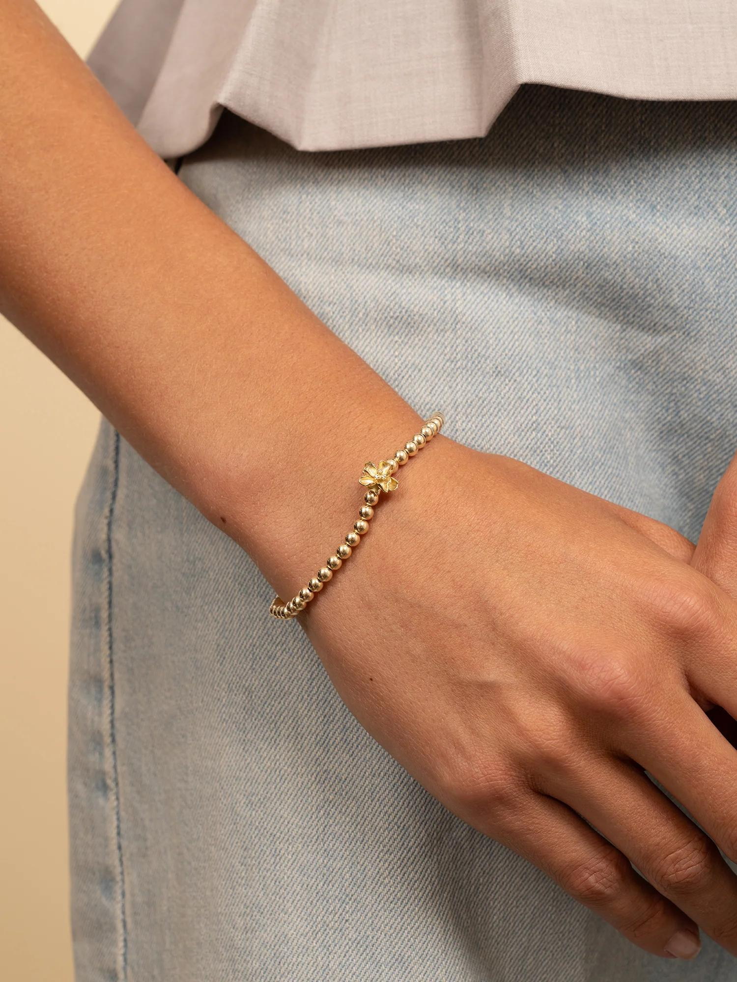 Botanic Armband Zirconia Goud Kleurig. Deze armband brengt sierlijke vormen en fonkeling samen. De botanische details geven een organische flow, terwijl heldere zirconia het licht verfijnd oppakken. Draag solo naast een horloge voor balans, of bouw een gelaagde set met een schakelarmband en een kralenarmband. De goudkleur houdt het geheel warm en veelzijdig. De afgeronde elementen liggen prettig op de huid en de sluiting voelt betrouwbaar, van ochtend tot avond. Combineer met kleine, glanzende studs of een subtiele hanger om de sprankel door te trekken. Een tijdloos, persoonlijk sieraad dat seizoen na seizoen een elegante, stralende noot aan je armparty toevoegt.