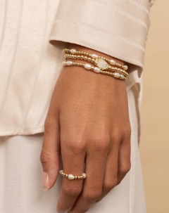 De Flow Armband Mother of Pearl heeft een zachte, verfijnde uitstraling die meteen opvalt door haar subtiele glans. Mother of pearl geeft dit sieraad een tijdloos en vrouwelijk karakter, waardoor het moeiteloos past bij zowel een casual outfit als een meer elegante look. Deze armband voelt licht en stijlvol om de pols en vormt een prachtig persoonlijk detail dat je iedere dag kunt dragen. Alleen gedragen is ze rustig en stralend, gecombineerd met andere sieraden zorgt ze voor een speels en eigen accent.
