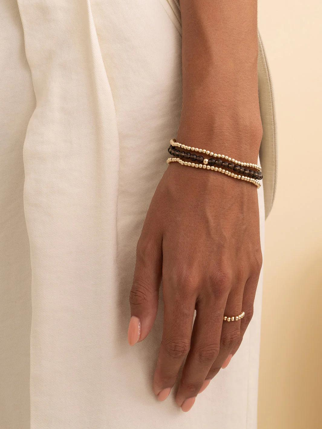 De Saturn Armband Small Smoky Quartz is een subtiele blikvanger, ontworpen voor de vrouw die houdt van ingetogen elegantie. De diepe, rokerige tint van de Smoky Quartz weerspiegelt rust en kracht, en vormt een prachtig contrast met het verfijnde ontwerp. Deze armband straalt tijdloze klasse uit en is ideaal voor dagelijks gebruik of als finishing touch bij een avondlook. Een stijlvol detail met betekenis.