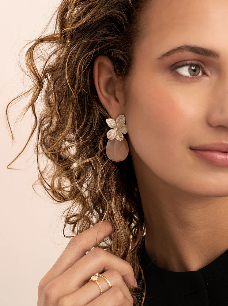 Sparkling Jewels biedt een kleurrijke collectie door het gebruik van de fijnste materialen. De gefacetteerde Sunstone Afterglow oorstenen zijn perfect om te combineren met verschillende oorbellen.