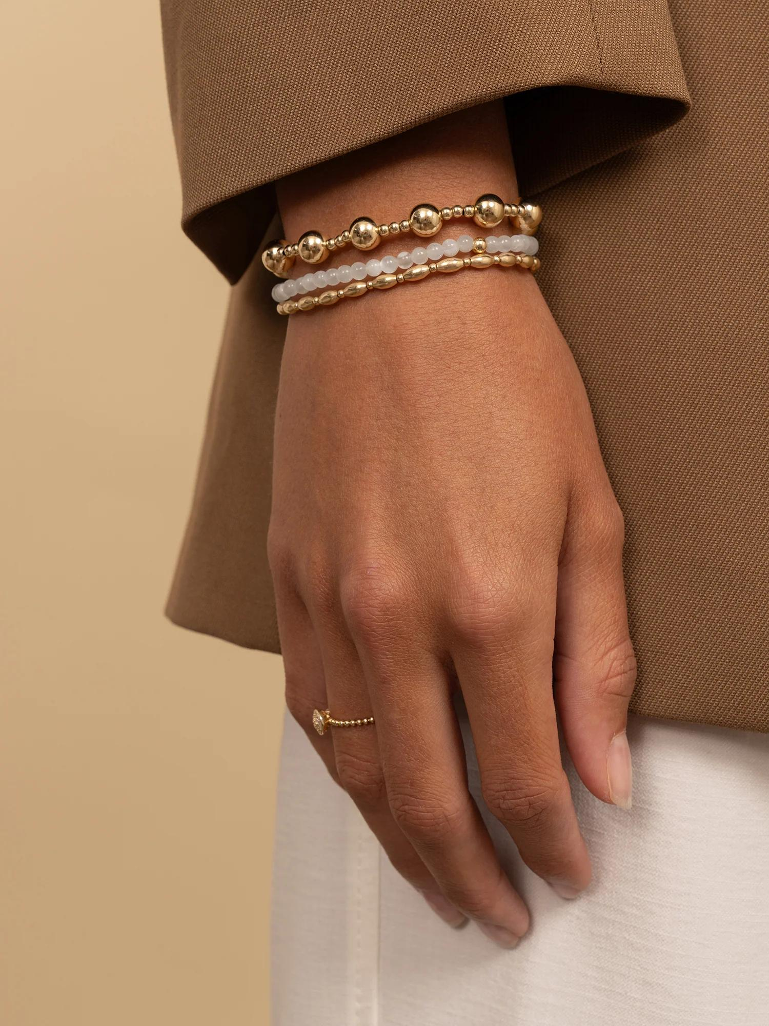 De Saturn Armband Small Moonstone is een elegant sieraad met een dromerige, vrouwelijke uitstraling. De Moonstone edelstenen hebben een zachte, parelmoerachtige glans die bij elk lichtinval verandert. De kleine kralen zorgen voor een verfijnde en comfortabele pasvorm. Moonstone staat symbool voor intuïtie en vrouwelijke energie. Deze armband is ideaal voor dagelijks gebruik en combineert prachtig met andere edelstenen. Draag haar solo voor een serene look of mix met andere armbanden voor een speelse, gelaagde stijl. Voor vrouwen die houden van subtiele magie in hun sieraden.