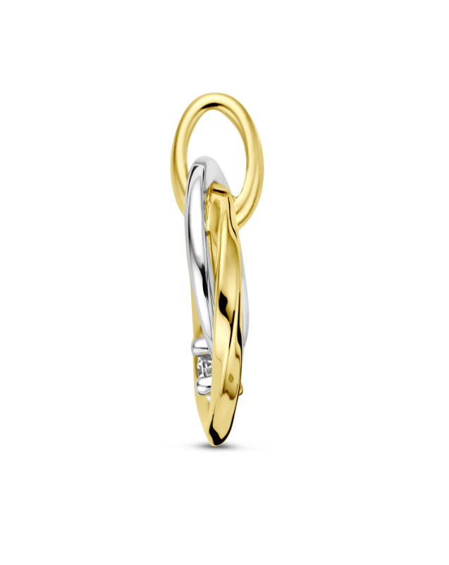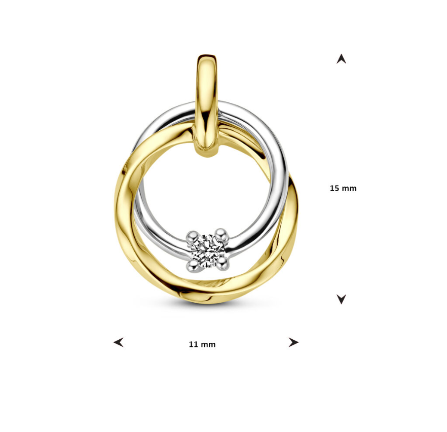 14 Karaat bi-color geel- en witgouden hanger uitgevoerd met 0.03 caraat diamant H/SI. De hanger heeft een totale hoogte van 15mm.