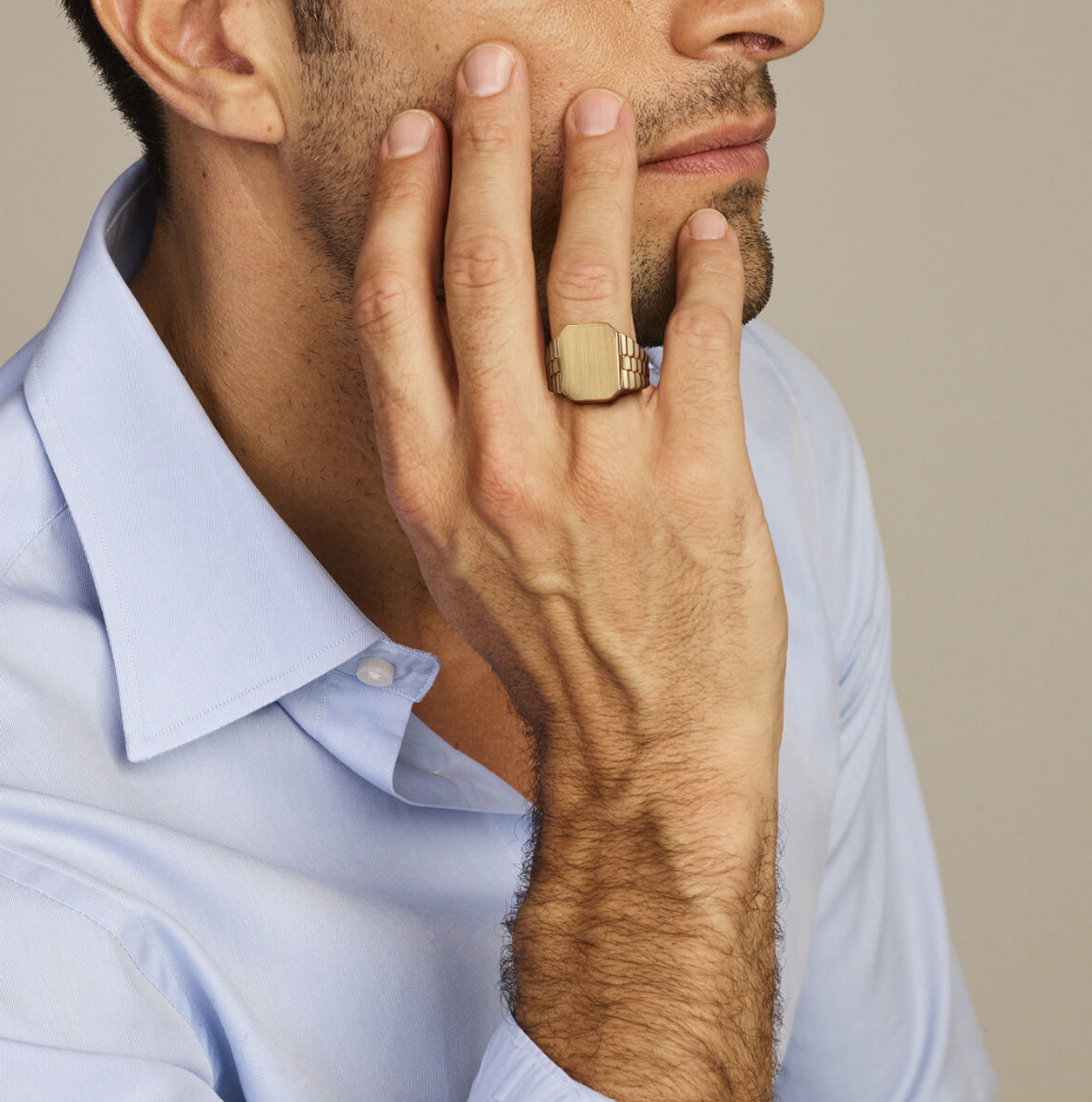 14 Karaat geel gouden heren monogram ring.
