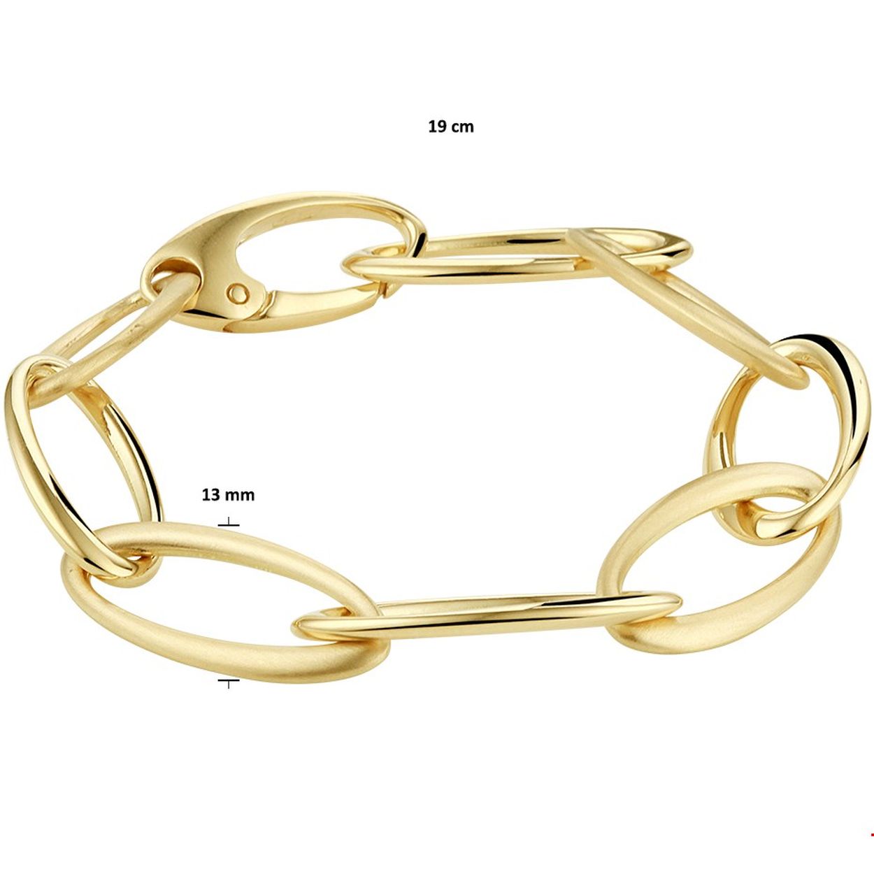 Stijlvolle geelgouden anker armband met een draaglengte van 19cm en een schakelbreedte van 13mm. De armband heeft om en om poli en mat afgewerkte schakels. Uitgevoerd met een stevige karabijn sluiting.