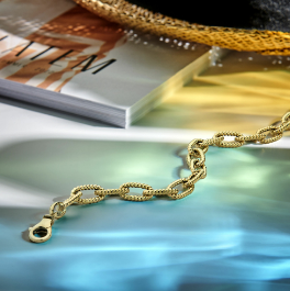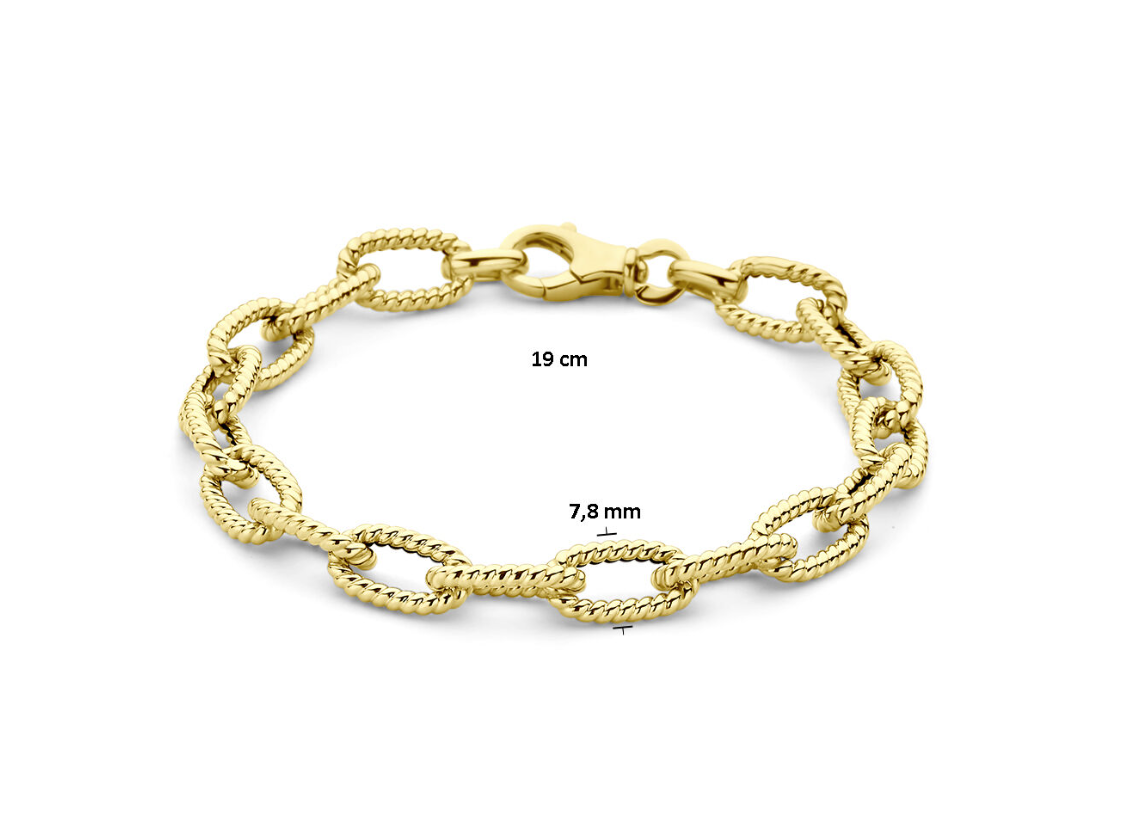 14 Karaat Geelgouden armband met een draaglengte van 19cm en een karabijn sluiting. De schakelbreedte is 7.8mm. Paperclip met gedraaide buis.