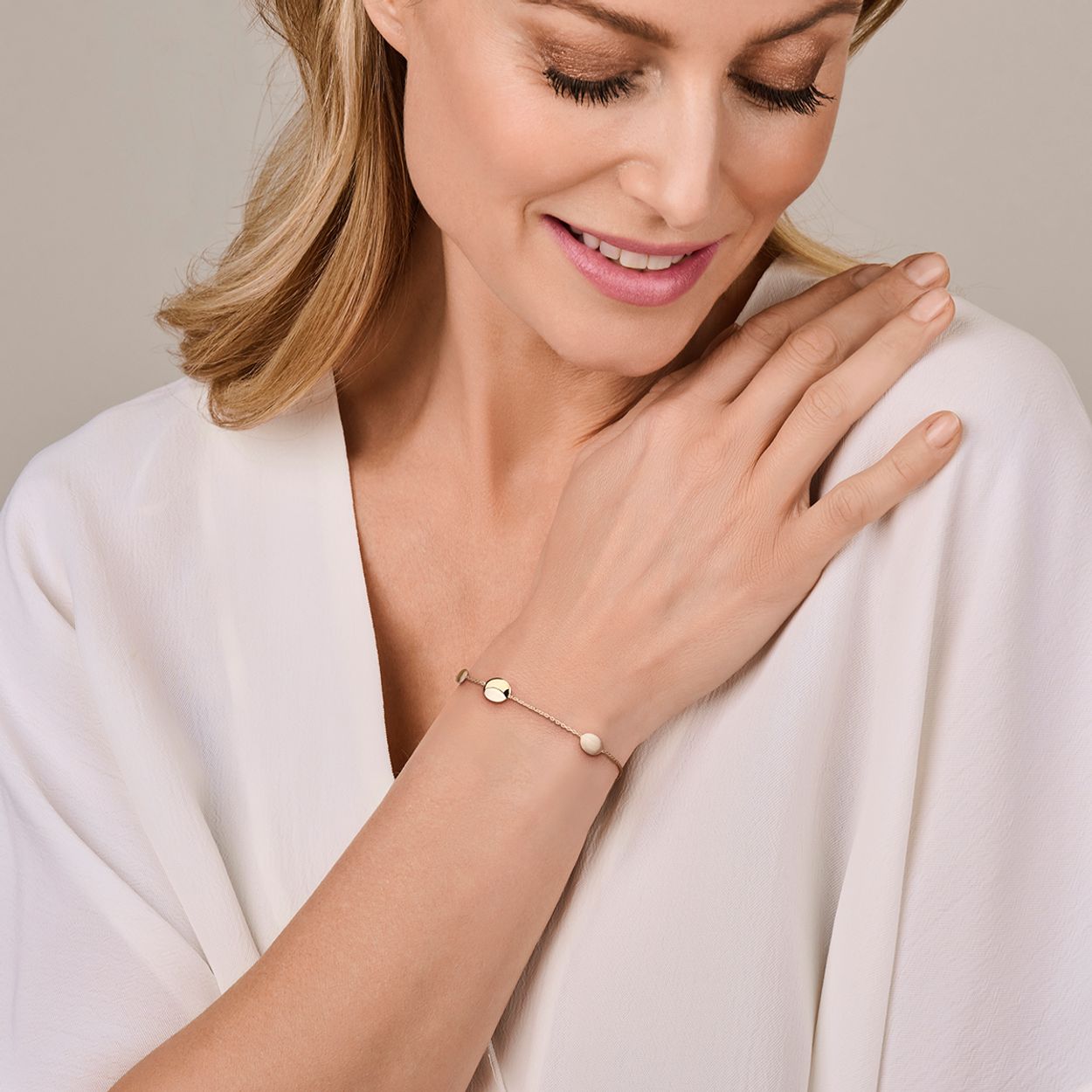 14 Karaat Geelgouden armband met ovaalvormige elementen. De armband heeft een draaglengte van 19cm. De schakelbreedte is 1.1mm. Uitgevoerd met een karabijn sluiting.