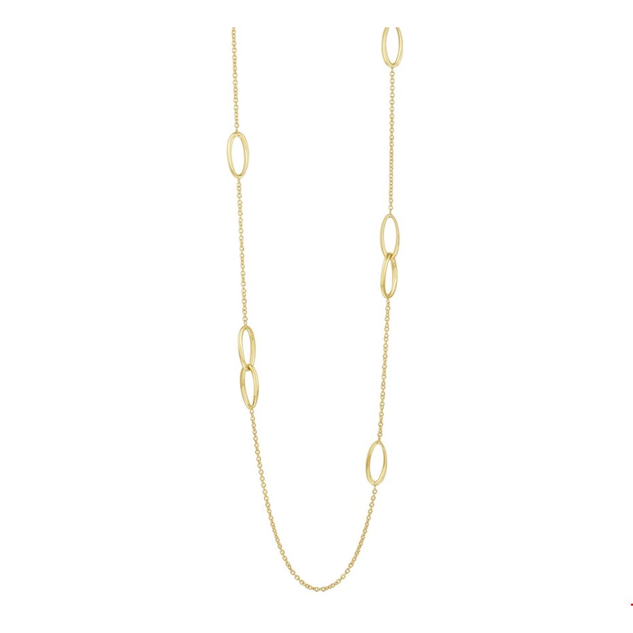 14 Karaat geel gouden Jassaron collier 80 cm lang met ovale ornamenten op speelse wijze verdeeld. met karabijn sluiting.