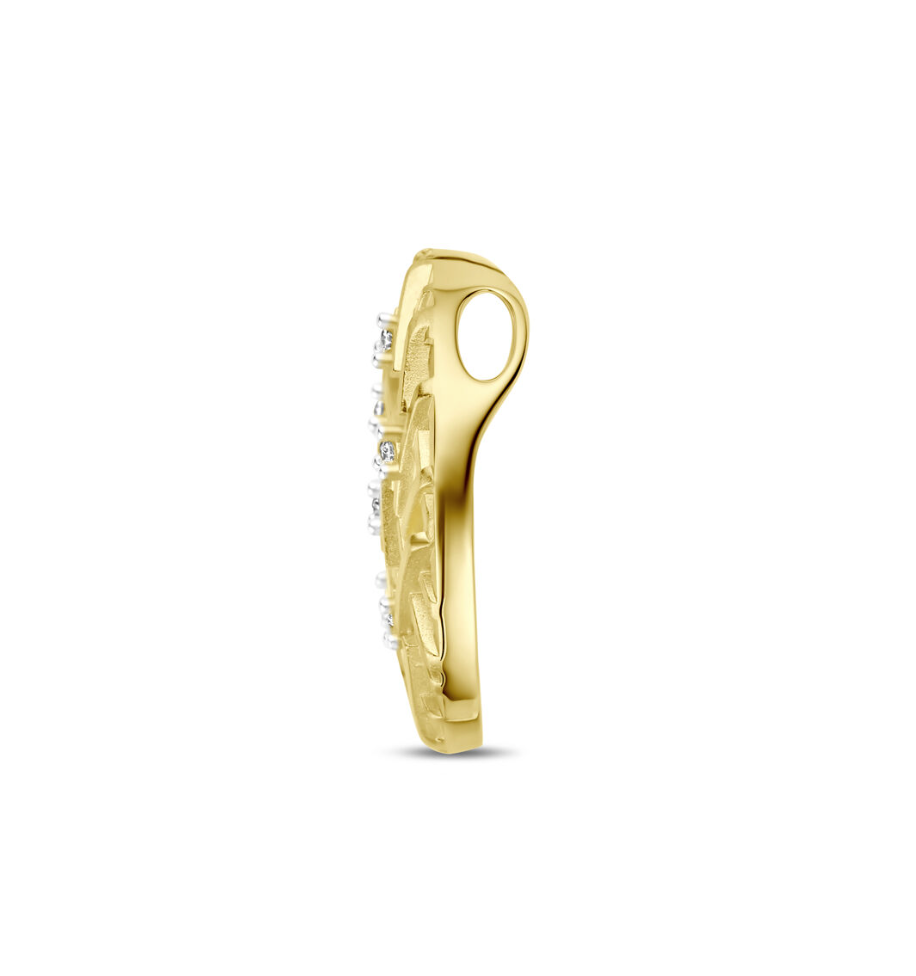 14 krt Geelgouden hanger uitgevoerd met briljant geslepen diamant. De hanger heeft een diameter van 21.5mm. Het briljant gewicht is 0.075crt. H/SI. The House Off Collectie.