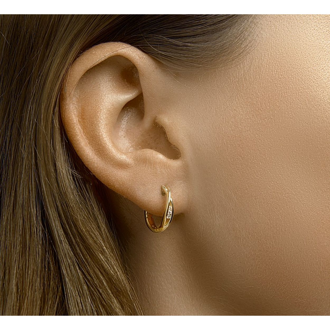 14k Geelgouden klapoorringen uitgevoerd met een schitterende diamant rij. De oorringen hebben een afmeting van 15.5x3mm.