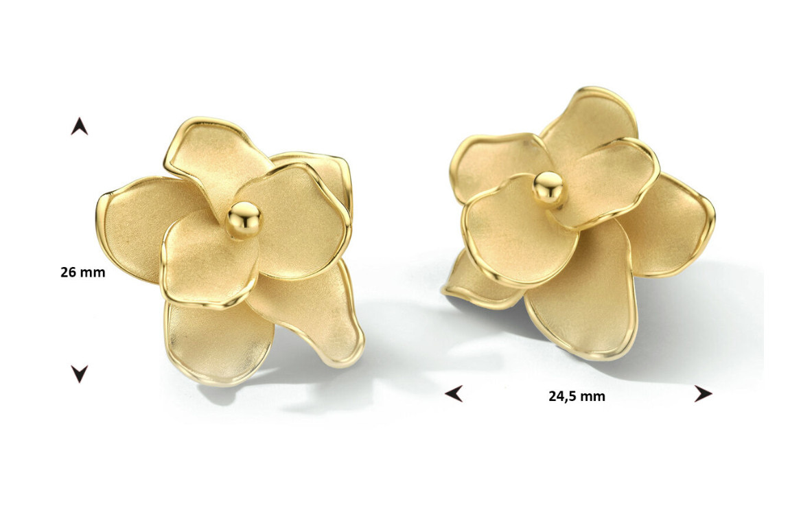 14k Geelgouden grote oorstekers in de vorm van een bloem.