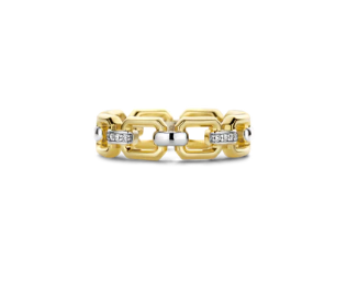Deze TI SENTO vergulde zilveren ring 12292ZY pronkt met iconische rechthoekige vormen die omhuld zijn door kleine luxueuze pavé schakels. De ring is vervaardigd uit de hoogste kwaliteit 925 sterling zilver en verguld met geelgoud. Dit iconische vintage stuk wordt gegarandeerd je nieuwe favoriete aanwinst. Voeg een vleugje vintage met een twist toe aan je look! Al onze ringen zijn nikkelvrij en hypoallergeen.