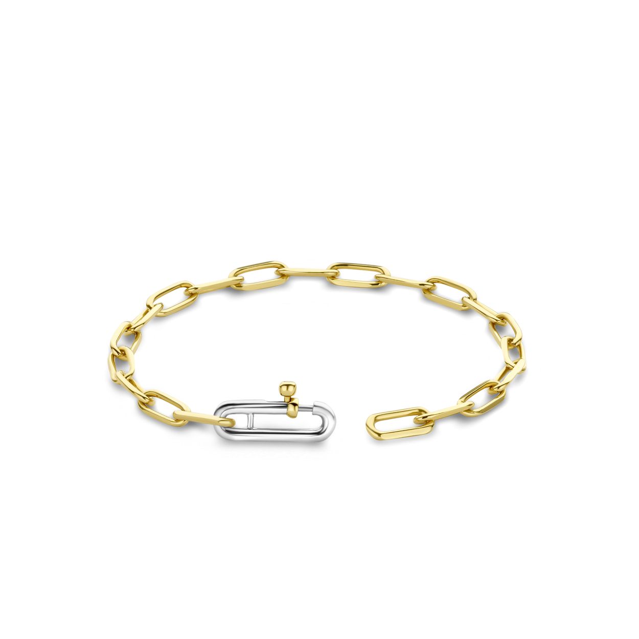 Deze TI SENTO closed-forever schakelarmband 23018SY heeft in het ontwerp een reeks van mini vergulde schakels, gemaakt van de hoogste kwaliteit 925 sterling zilver en plated met geelgoud. De zilveren sluiting is versierd met een kleine glinsterende cubic zirkonia (CZ) steen. Zoals Combineer dit stijlvolle vintage piece met andere stijlen en creëer een statement look. Verkrijgbaar in de maten small, medium en large. Al onze armbanden zijn nikkelvrij en hypoallergeen.